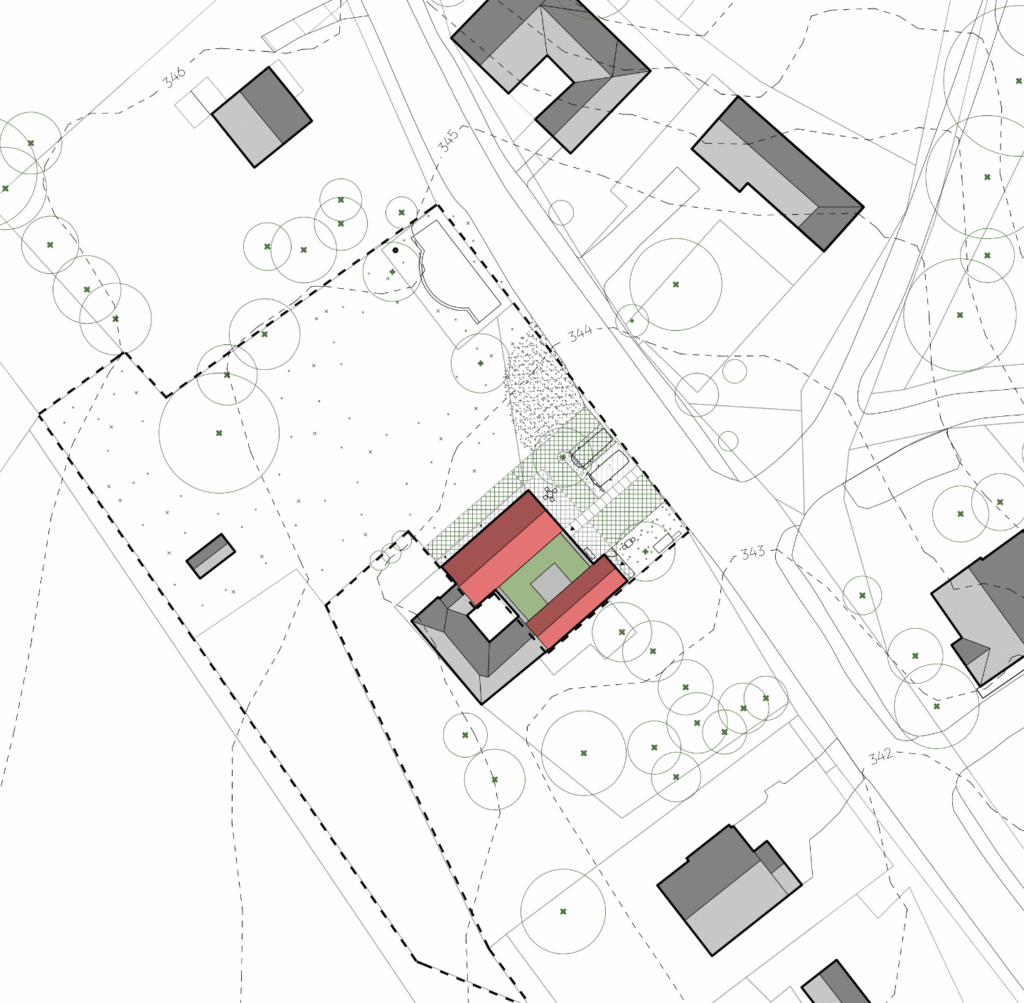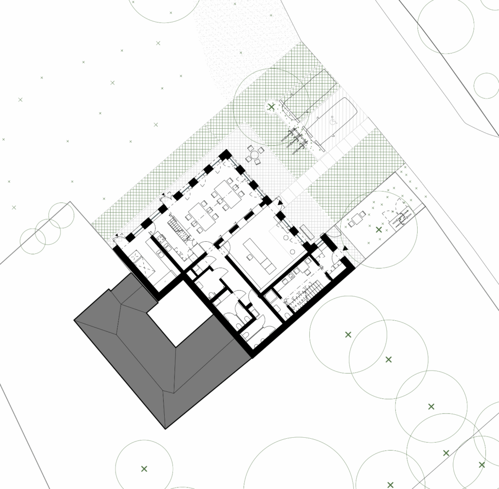 V květnu roku 2024 jsme byli osloveni starostkou paní starostkou malé obce poblíž Moravské Třebové ohledně adaptace myslivny na novou klubovnu. Součástí měla být také knihovna, noclehárna pro skauty, apartmán a malá myslivna, v níž by mohli myslivci uskladnit zvěř po honitbě. Po prověření kapacit, zaměření domu a sondáži stávajících konstrukcí bylo zadání upraveno a obec se shodla na novostavbě.