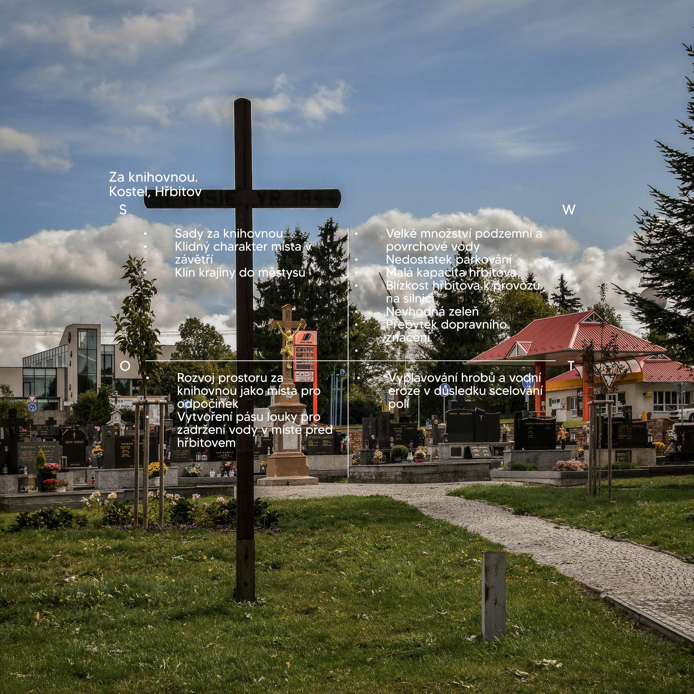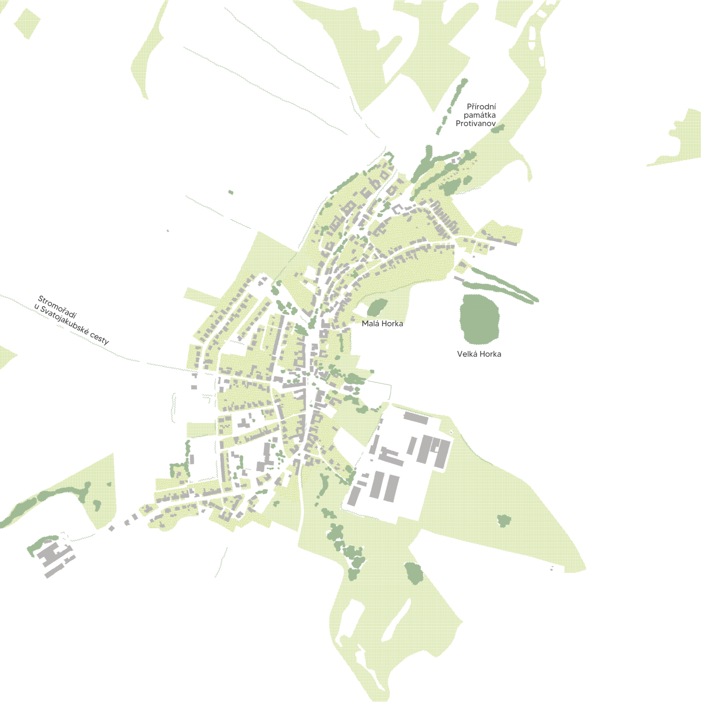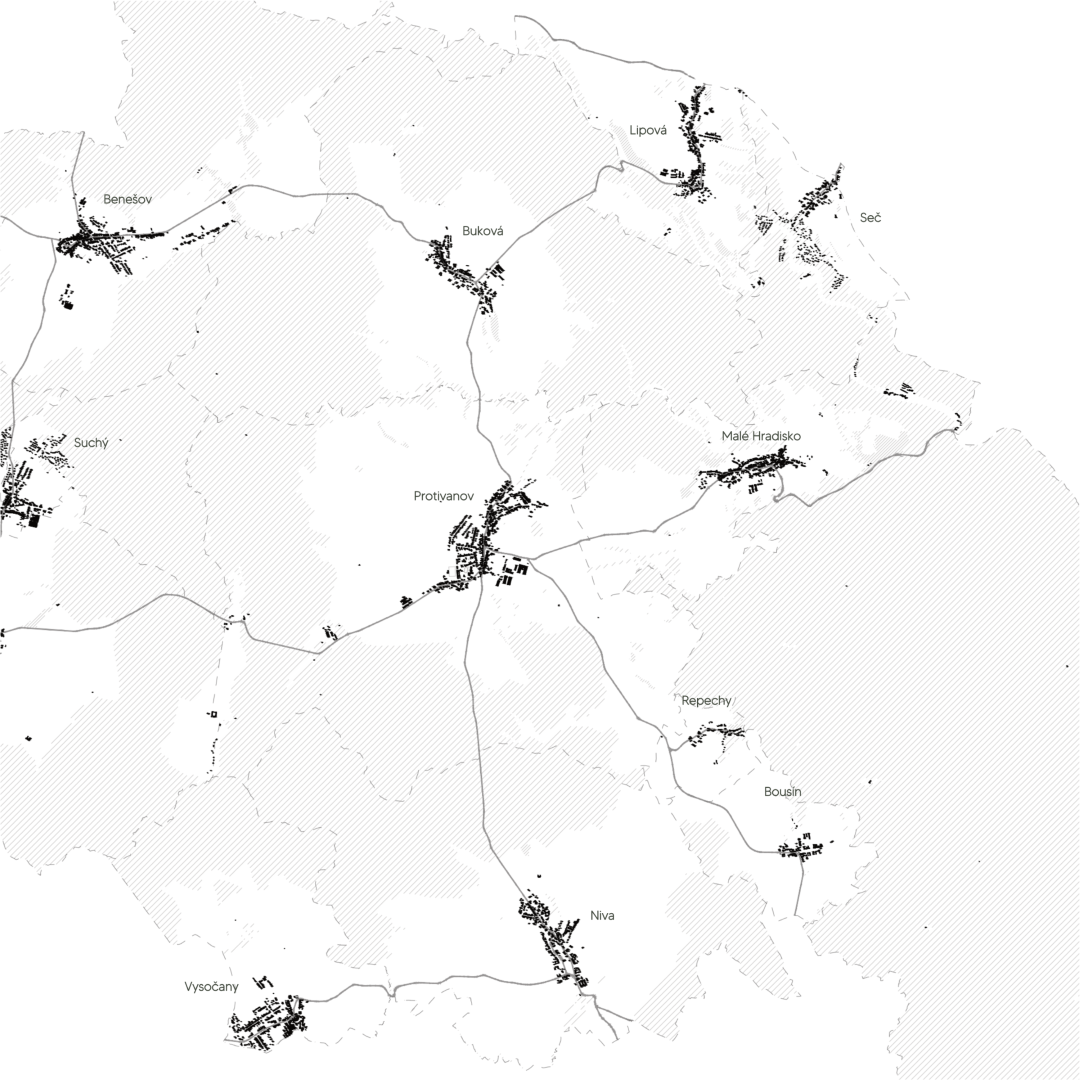 Projekt se věnuje několika měřítkům od celku a širších vztahů městysu k okolí, až po detailní koncepci oblasti protivanovského hřbitova a knihovny. Ve fázi průzkumů a analýz jsme se zabývali prostředím městysu v kontextu ekosystémového fungování, charakterem místa a historickým i funkčním vývojem obce. Součástí analytické části byla i participační schůzka s místními obyvateli, díky které jsme mohli lépe proniknout do řešených problémů.