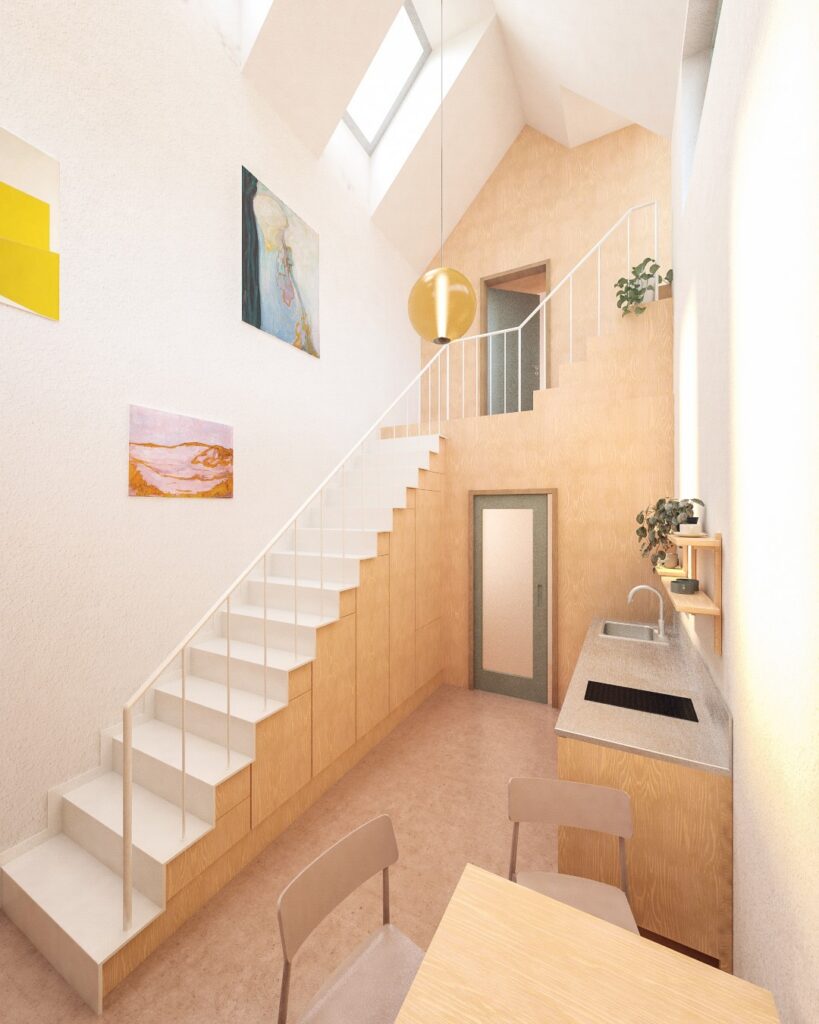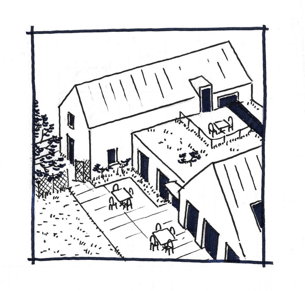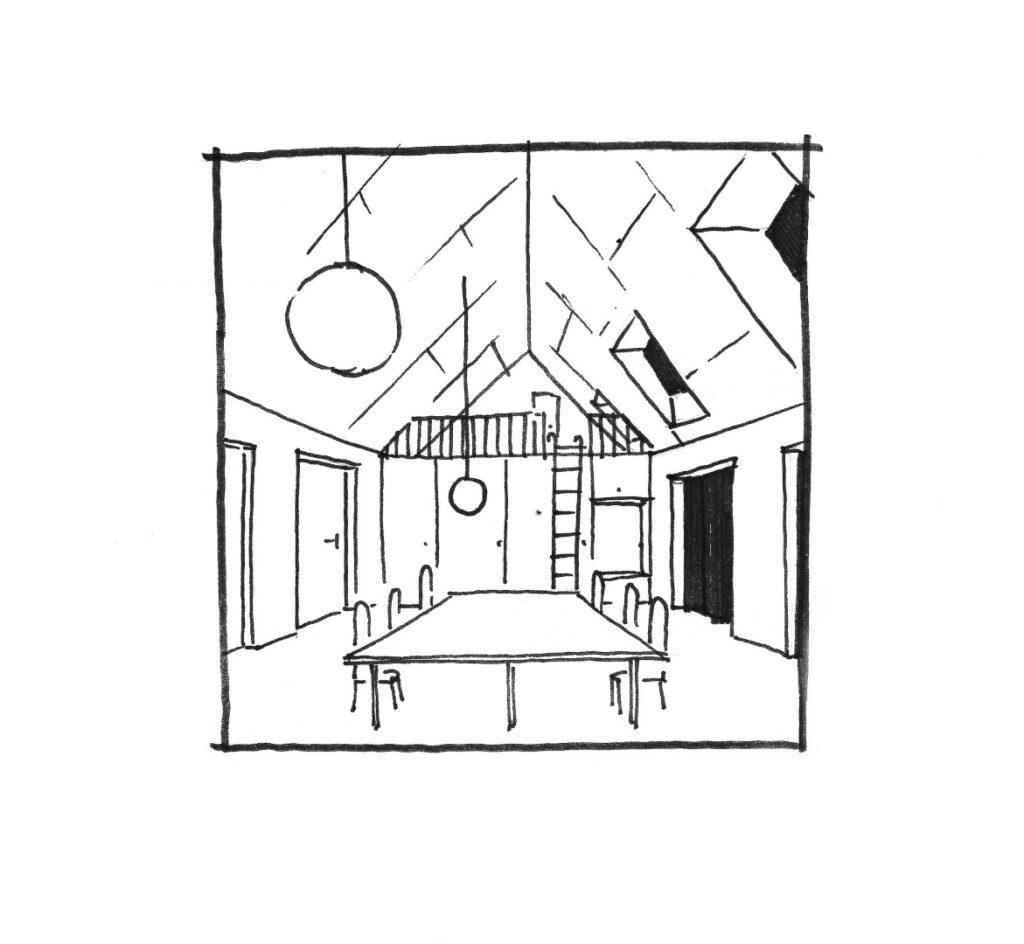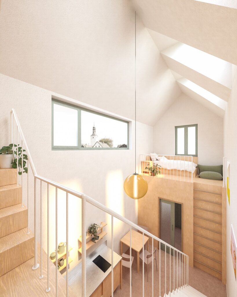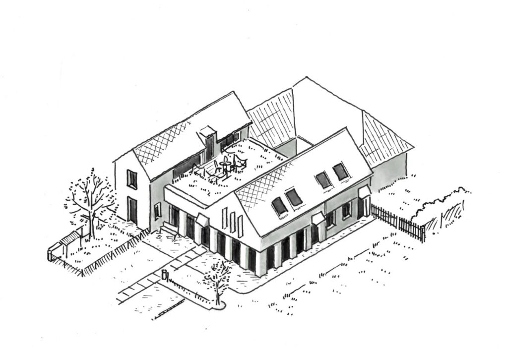 In May 2024, we were approached by the mayor of a small village near Moravská Třebová about adapting a hunting lodge into a new community center. That was to include a library, a dormitory for the scouts, an apartment and a small hunting lodge where the hunters could store their game after the hunt. After examining the capacity, surveying the house and probing the existing structures, the brief was modified and the community agreed to a new building.